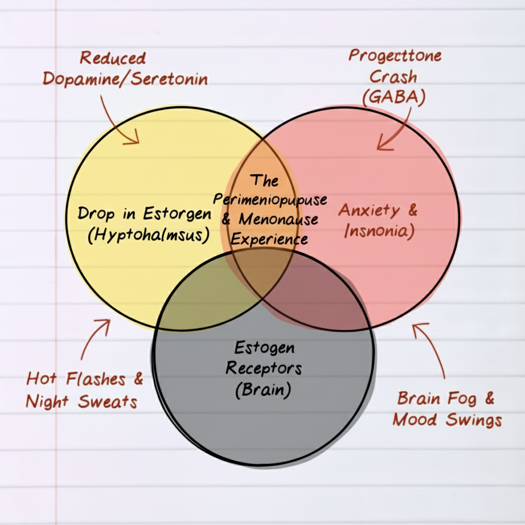 "Second, your progesterone crashes. Without it, your brain can't produce enough GABA—the neurotransmitter that keeps you calm and helps you sleep. That's why you're waking up at 2am with your mind racing, unable to shut it off."