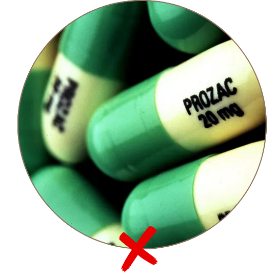 Treats the symptom, not the cause. Common side effects: weight gain, sexual dysfunction.